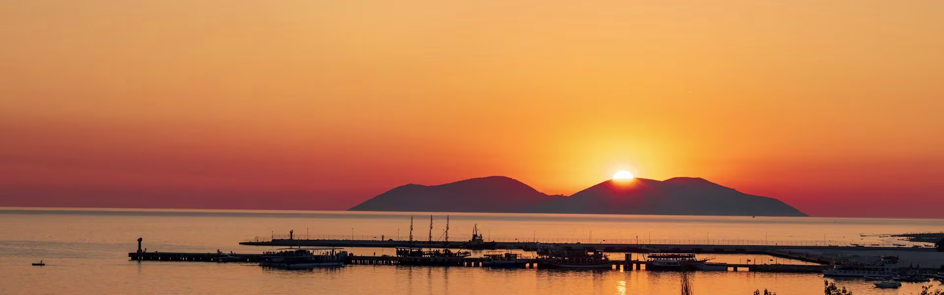 Radhimë sits at one of the most geographically significant points in the Adriatic and Ionian region. The Karaburun Peninsula, visible directly across the bay, marks the precise line where the Adriatic Sea to the north gives way to the Ionian to the south. On a clear day this boundary is almost visible — the water changes colour and texture at the cape, a detail that makes even a quiet afternoon on the beach feel like something more than just a beach.